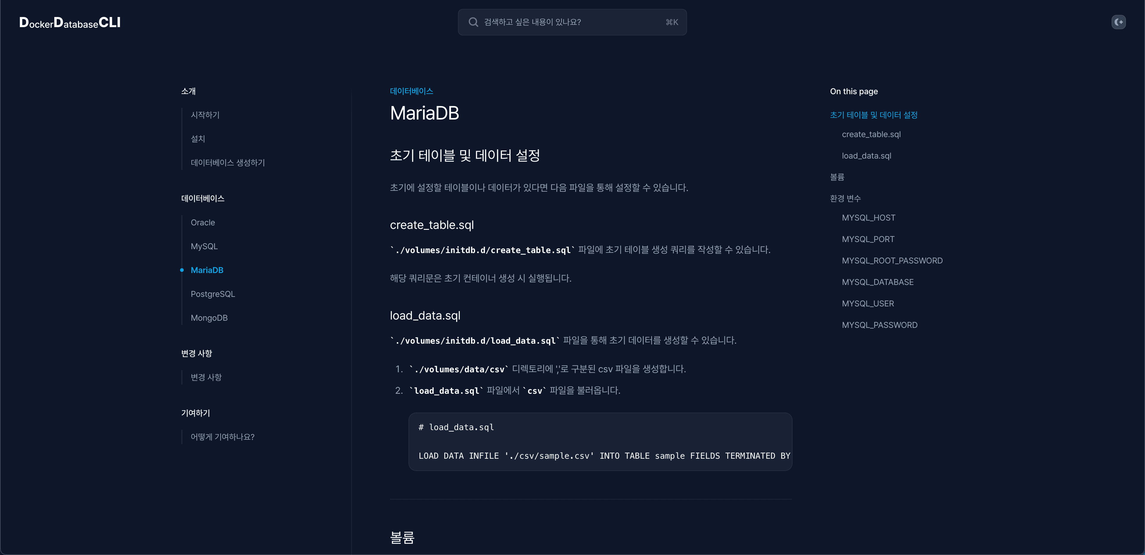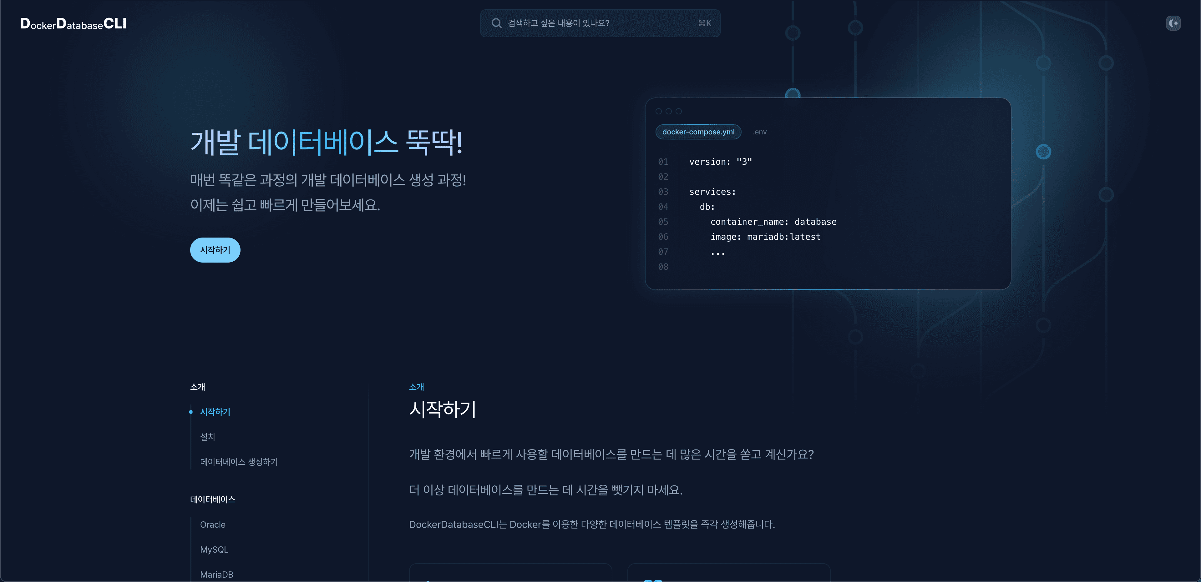 React의 CRA처럼 Docker를 활용한 데이터베이스 환경 구성을 CLI를 통해 쉽게 구성할 수 있도록 돕는 라이브러리입니다. 현재 4개의 데이터베이스를 쉽고 빠르게 생성할 수 있도록 지원하고 있습니다.