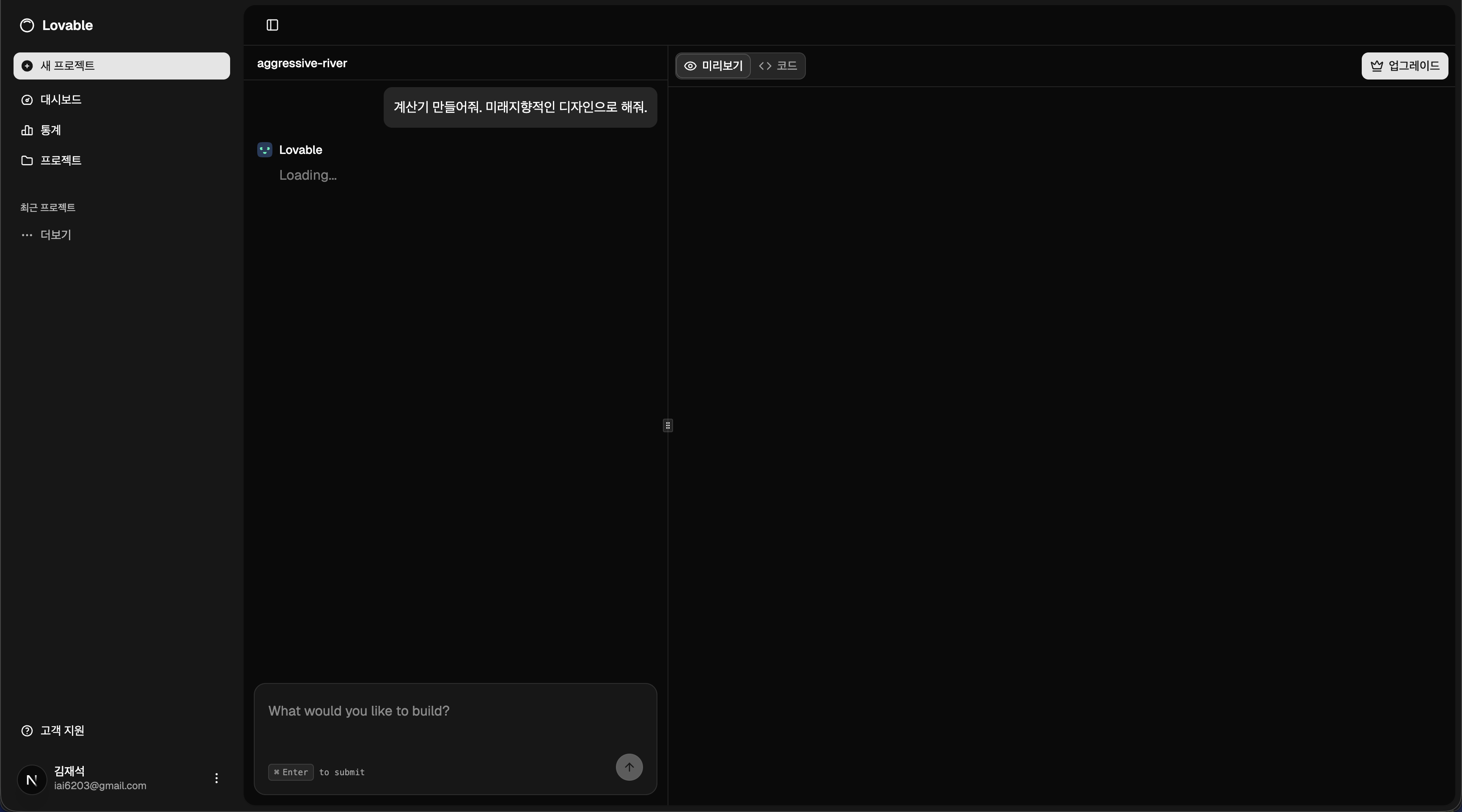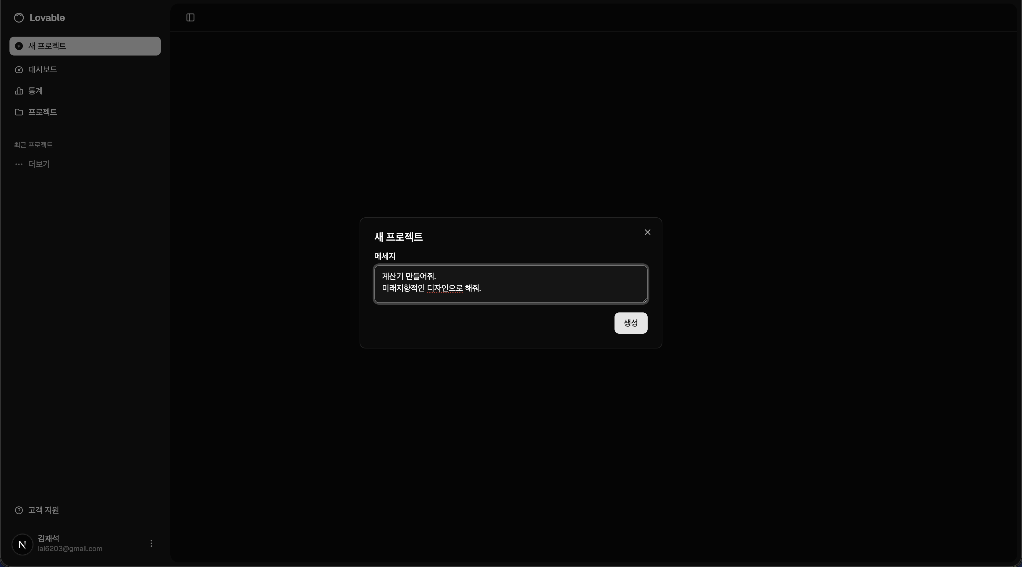 Lovable은 실제 운영 중인 Lovable을 클론한 사이드 프로젝트입니다. 자연어 대화만으로 웹 애플리케이션을 생성할 수 있는 AI 기반 풀스택 플랫폼으로, 사용자가 채팅으로 원하는 앱을 설명하면 AI 에이전트가 코드를 생성하고 샌드박스 환경에서 실시간으로 실행하여 즉시 결과를 확인할 수 있습니다.