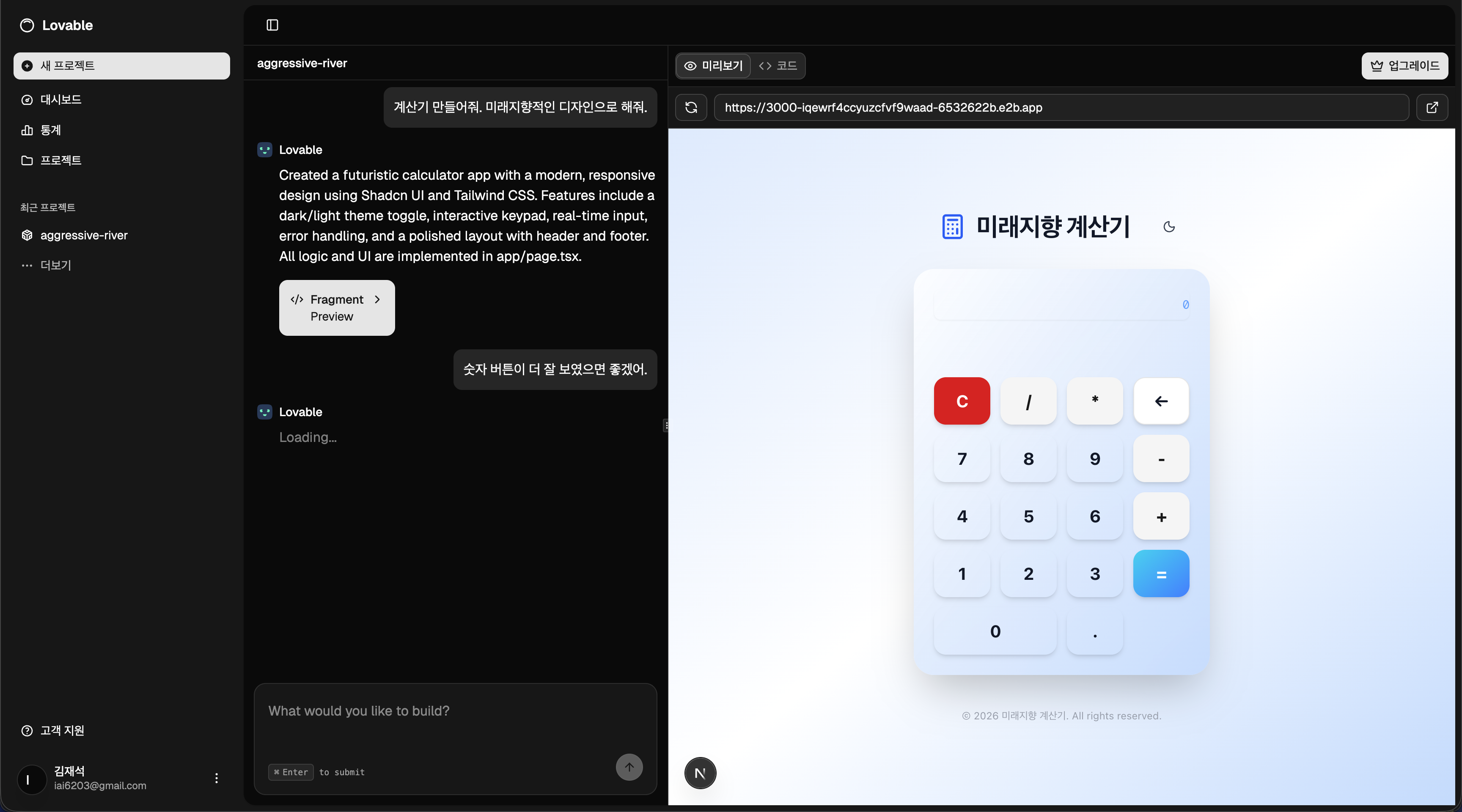 - 기존 대화 맥락을 유지하며 추가 요청을 통해 프로젝트를 점진적으로 개선할 수 있습니다.