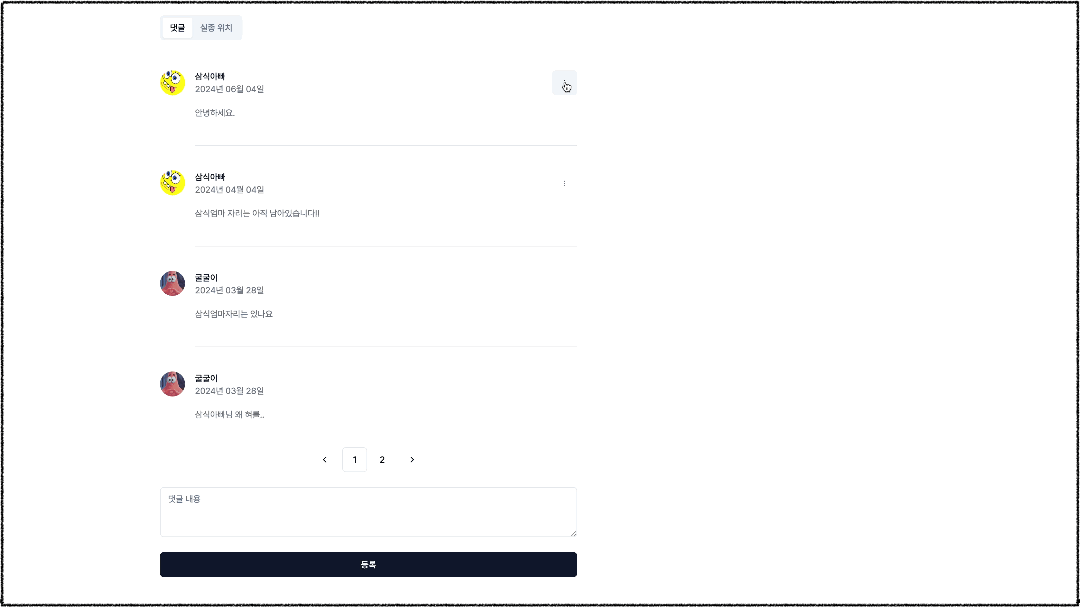 (카카오 지도 API를 활용하여 위치를 입력받았고 Cloudinary 스토리지에 이미지를 저장했습니다.) - 로그인 한 사용자는 게시물에 댓글을 남길 수 있습니다.