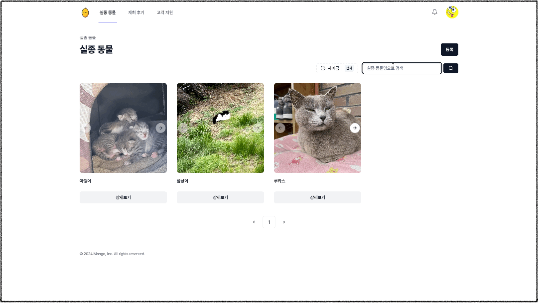 망고는 실종 반려 동물을 찾을 수 있도록 도와주는 커뮤니티 서비스입니다. 실종 동물에 대한 정보를 등록하고 커뮤니티를 통해 찾을 수 있도록 돕습니다.